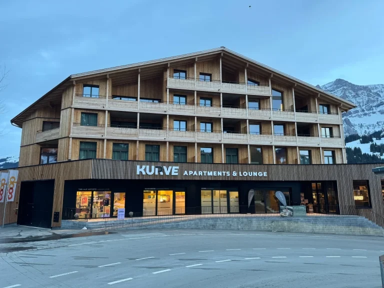 Du suchst eine familienfreundliche Ferienwohnung in Adelboden? Dann sind die KURVE Apartments die perfekte Adresse für dich. 38 stilvolle Apartments mit Hoteldienstleistungen, eine gemütliche Lounge und der Blick auf die beeindruckende Bergkulisse sorgen für einen rundum gelungenen Aufenthalt. Die Apartments bieten Platz für 2–10 Personen und sind modern, funktional und mit viel Liebe zum Detail eingerichtet.